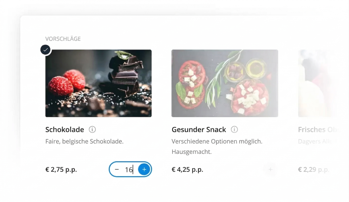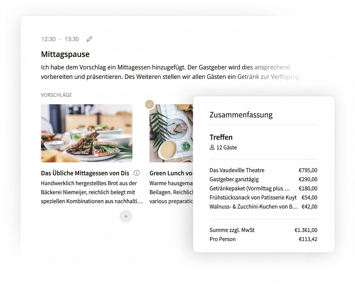 Da Ihre Kund:innen die Kosten für eine zusätzliche Stunde oder einen extra Snack leicht einsehen können, planen sie das Event je nach ihren Wünschen und helfen Ihnen, mehr zu verkaufen.